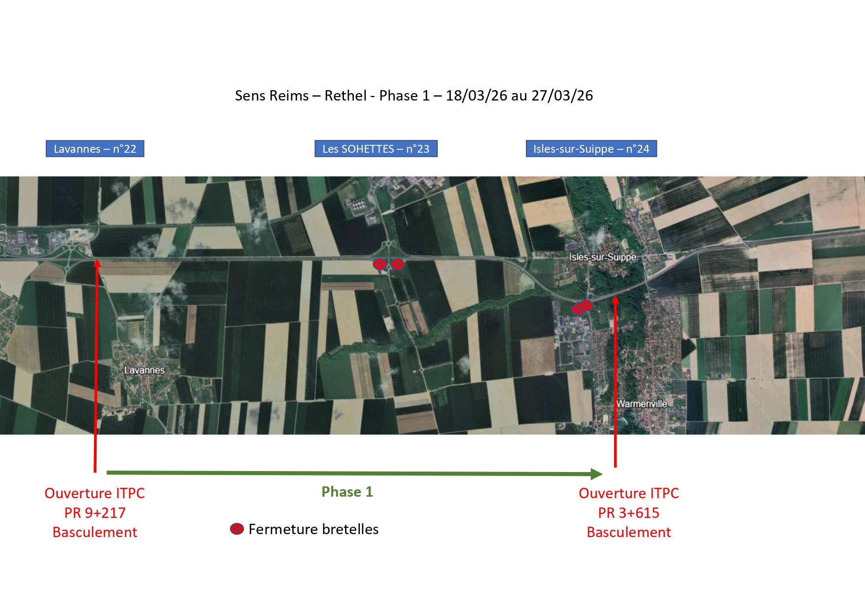 • ❌ Demi-échangeur “Isles-sur-Suippe” (sens REIMS ➜ RETHEL)