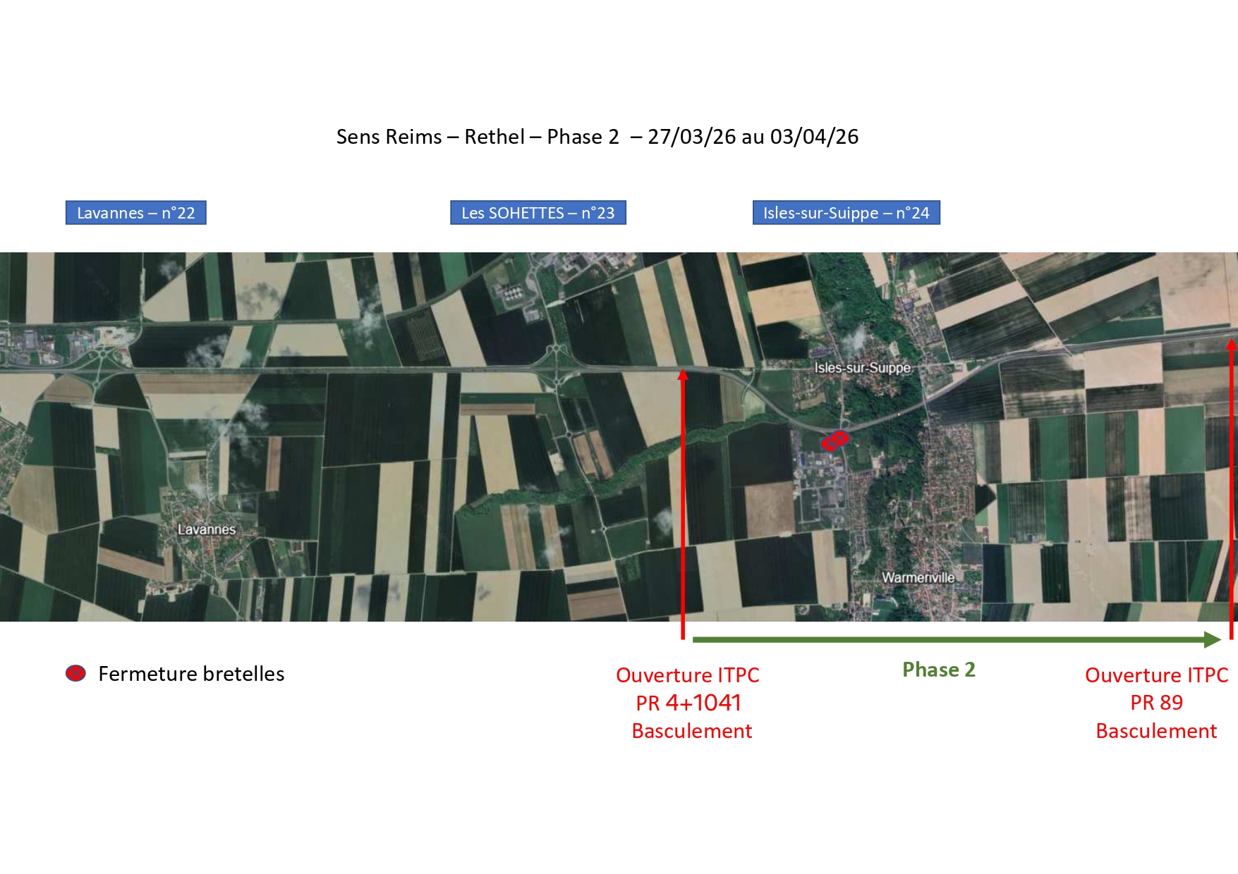 • ❌ Demi-échangeur “Isles-sur-Suippe” (sens REIMS ➜ RETHEL)