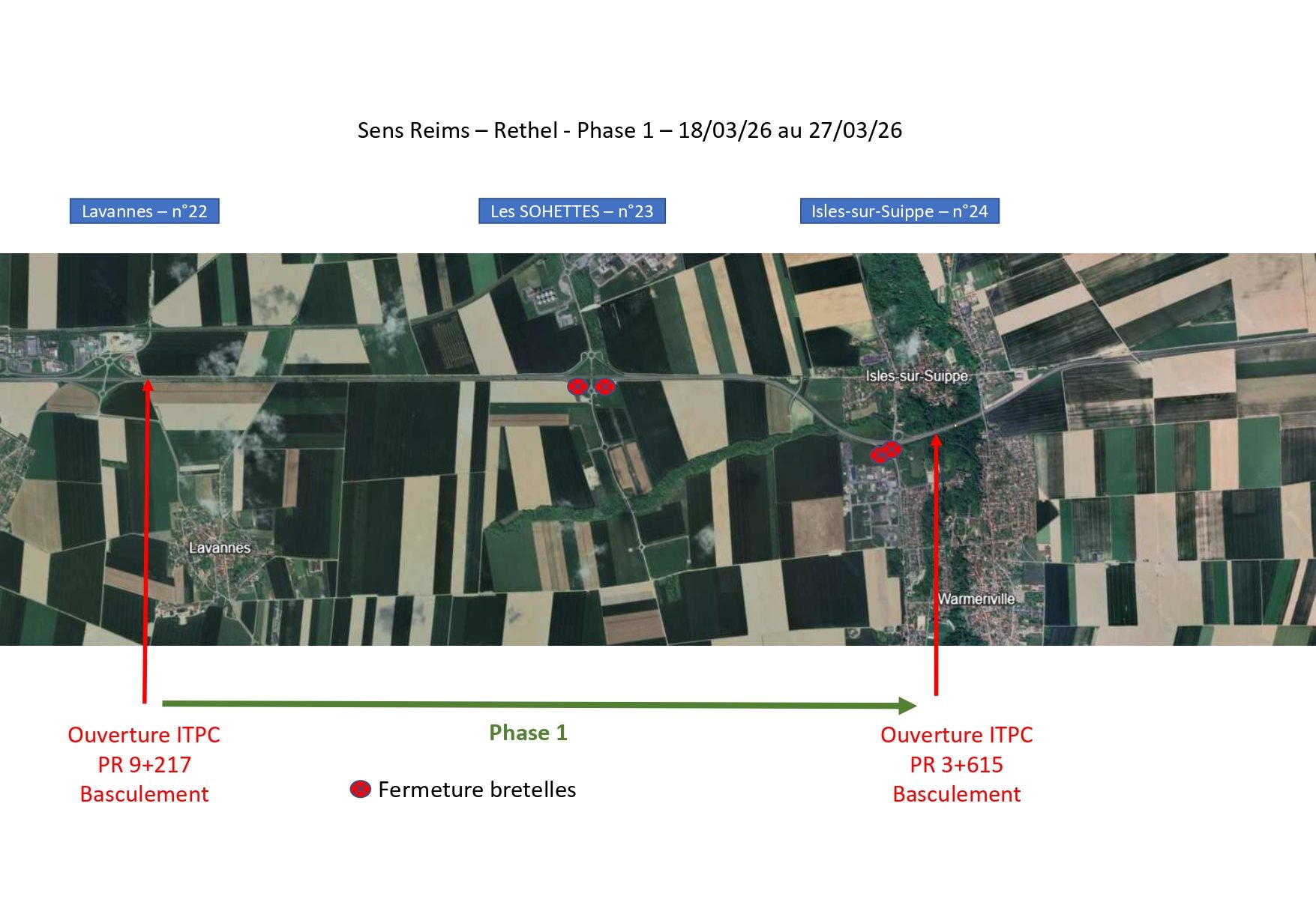 • ❌ Demi-échangeur “Isles-sur-Suippe” (sens REIMS ➜ RETHEL)