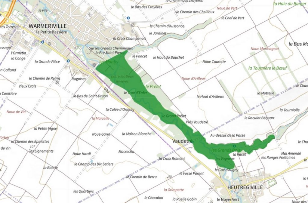 La ZNIEFF (Zone naturelle d’intérêt écologique, faunistique et floristique) occupe une surface de près de 90 hectares dans la vallée tourbeuse de la Suippe entre les communes de Warmeriville et d’Heutrégiville.